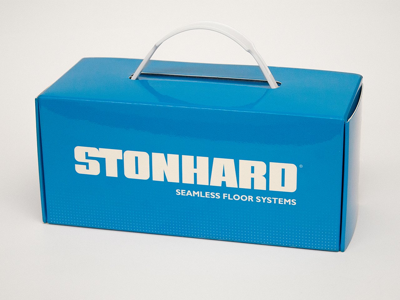Stonhard manufactures a wide range of industrial and commercial flooring options and needed a fresh way for their sales team to present the extent of their product offering. A binder was created for architectural firms to include in their materials library and the sales team was armed with sample fan decks that included printed reproductions of the many color options along with a physical sample of each brand. The decks were self-contained to allow the sales team to bring only the samples they needed and were also designed to tuck into a carrying case for times when the full line was required.