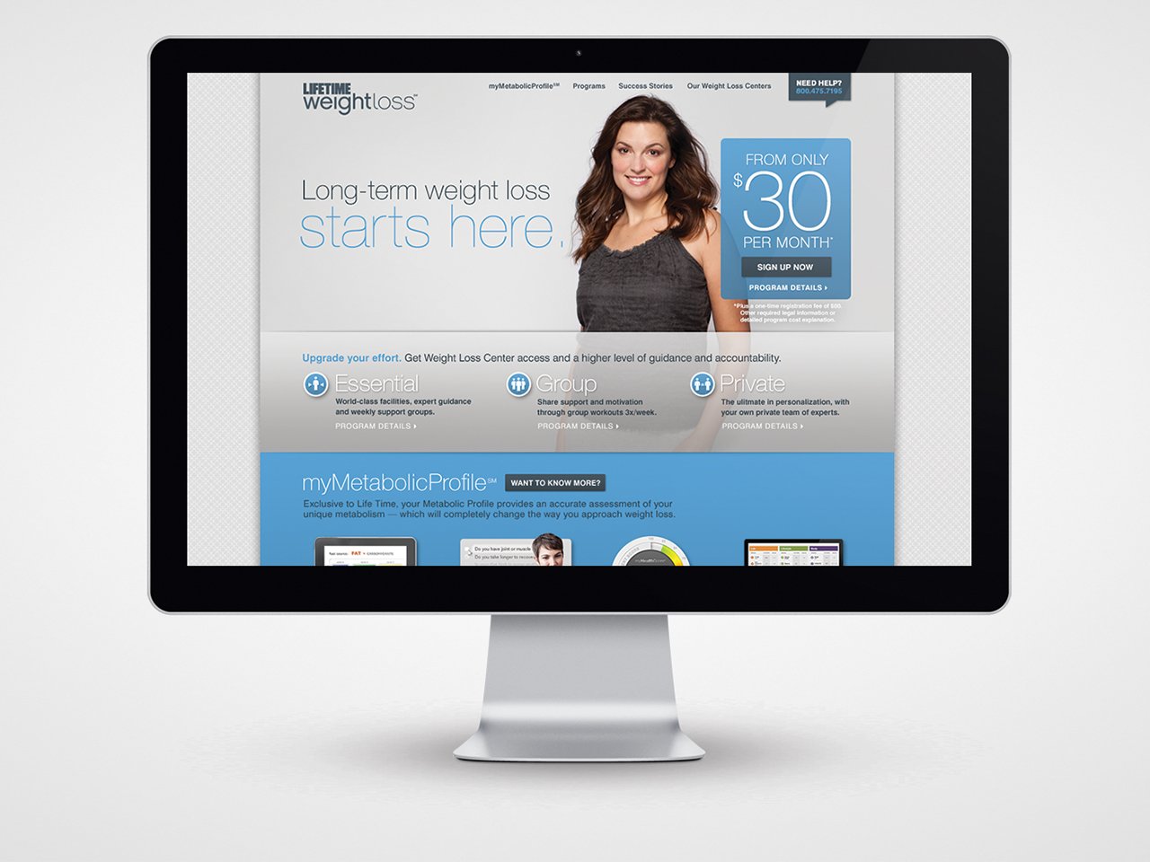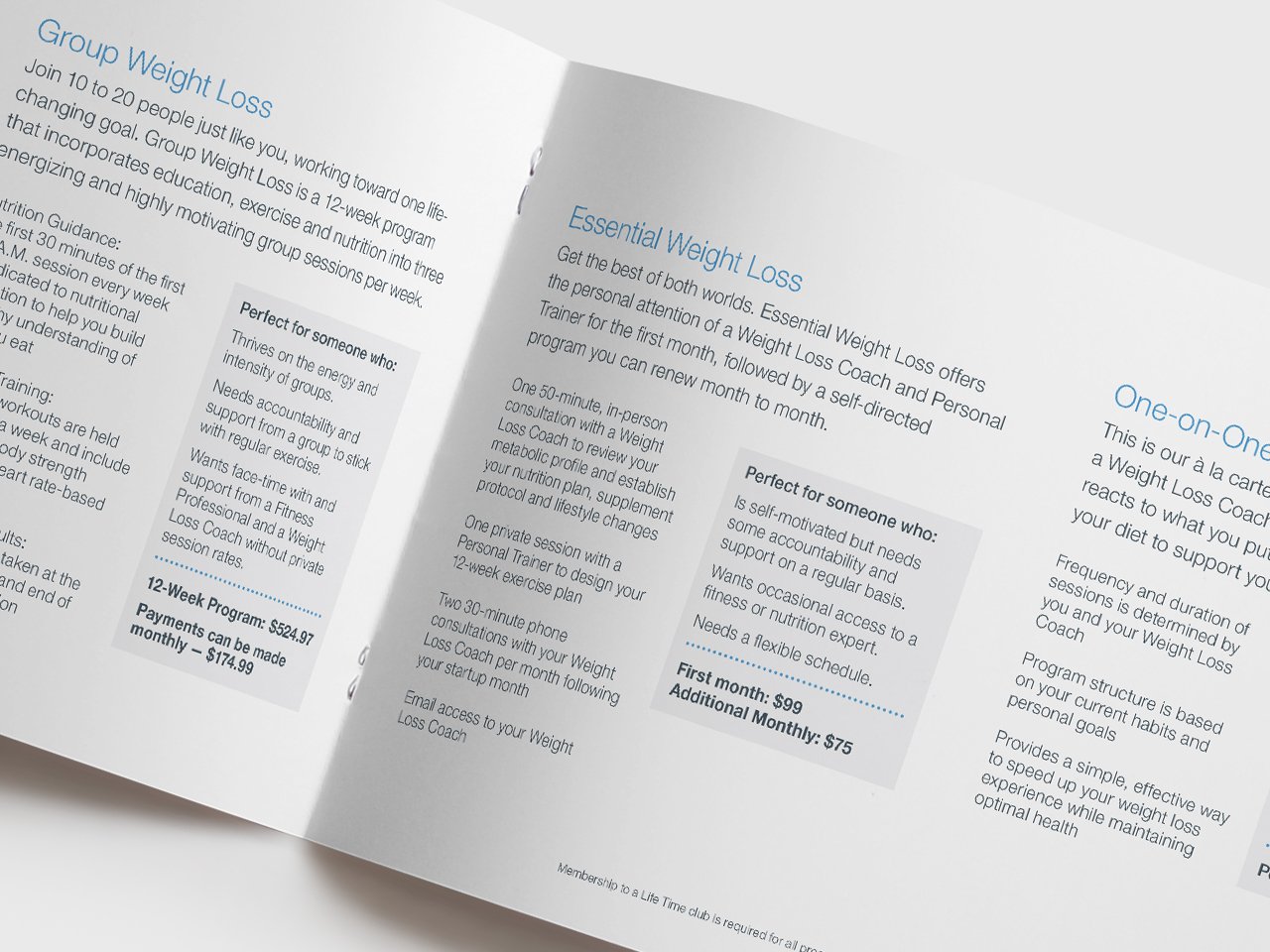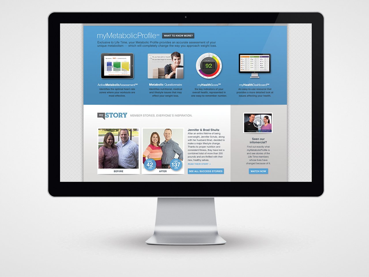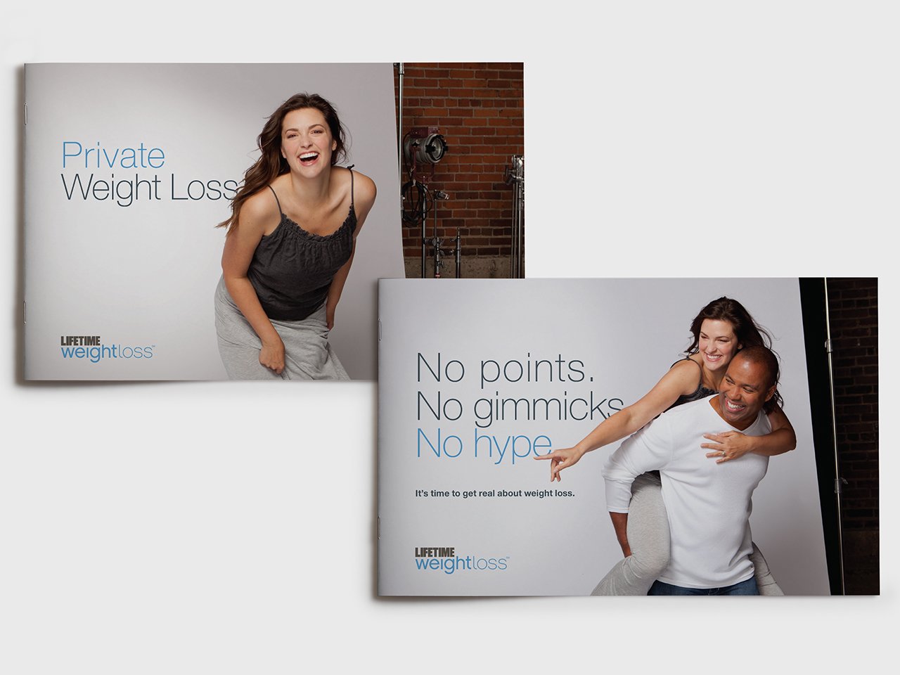 Life Time needed a new face, literally, for their Weight Loss programs. The redesign of their marketing collateral sought to personalize the experience and “get real” about weight loss. Custom photography of people during their weight loss journey, shot on the edges of the studio set, underscored Life Time’s focus on real results for real people, without gimmicks and without hype. The website was designed to launch in conjunction with a broadcast informercial, allowing viewers to buy Life Time Weight Loss programs directly online.