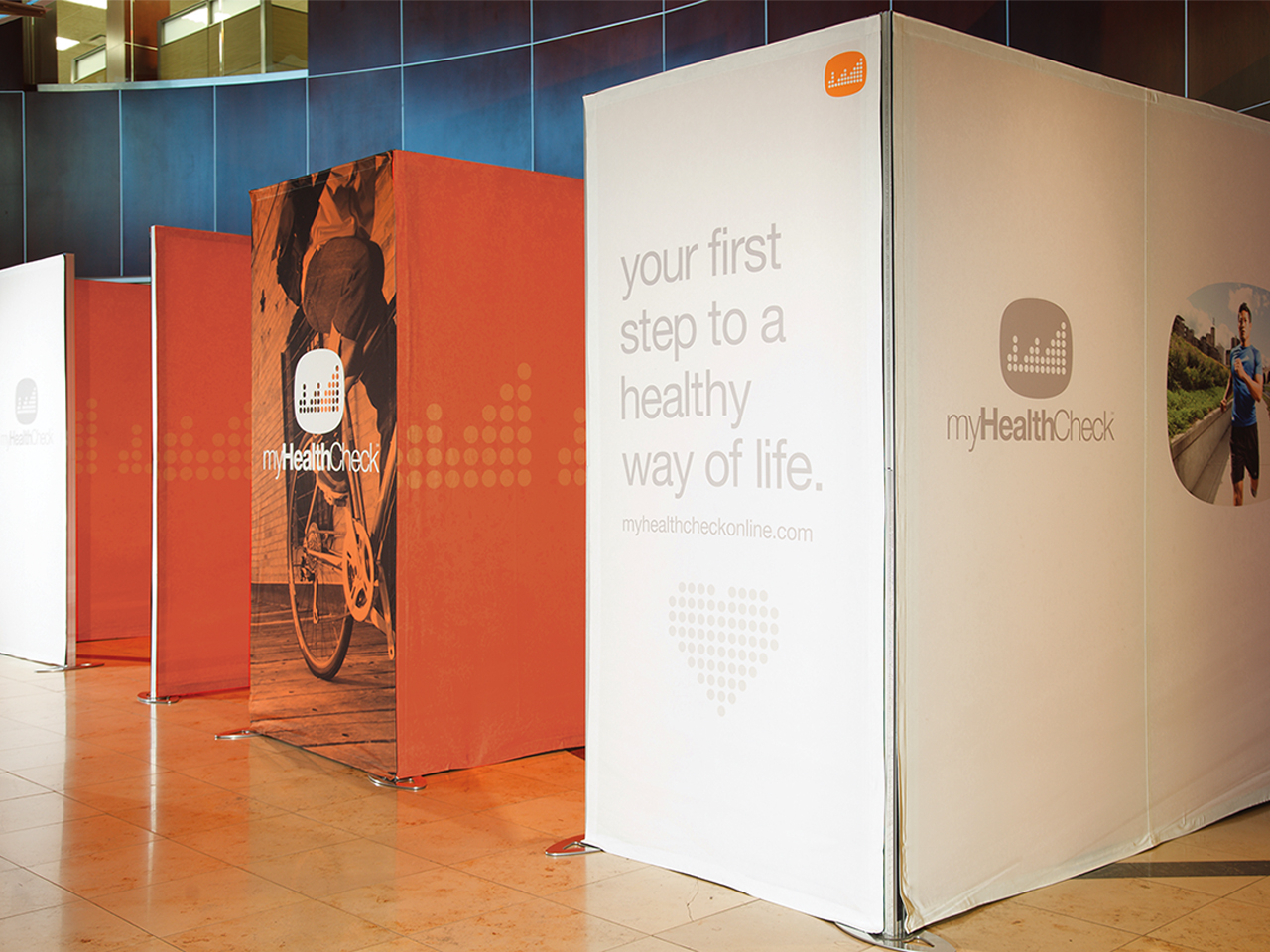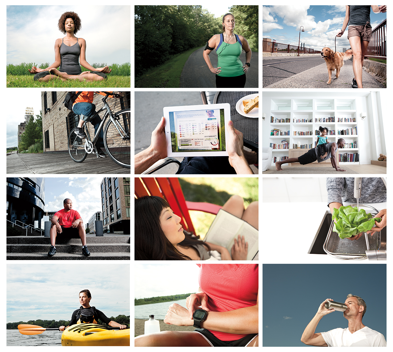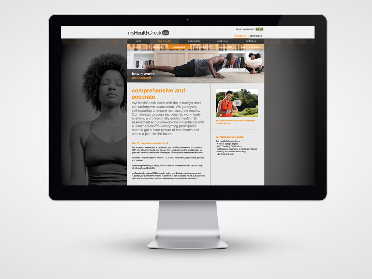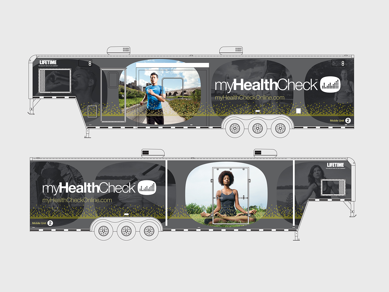 Life Time launched myHealthCheck to help companies get control of their health care costs by linking premium deductions with key health measurements. The program included physical and laboratory assessments, health counseling, group programs and an online dashboard to track progress. The assessments were carried out on-site at employers' offices in mobile assessment units or in pop-up facilities. To connect with the wide array of participants who would participate in the program, custom photography captured a range of demographic and physical profiles engaging in everyday healthy activities.